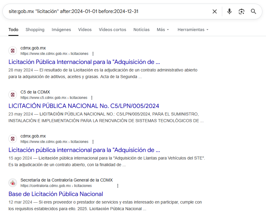 | Documentos PDF recientes sobre licitaciones | site:gob.mx "licitación" filetype:pdf after:2024-01-01 |
