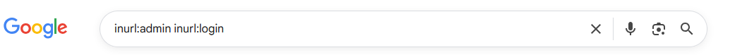 Localiza páginas cuya URL contiene tanto "admin" como "login", típicamente paneles de administración. Rutas como /admin/login.php o /portal/admin-login calificarían como resultados.